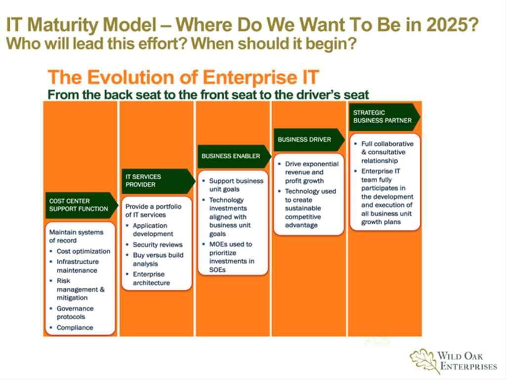 The good news is that the work I’ve done with early adopter CIOs and their senior leadership teams utilizing this approach has resulted in them being able to free IT’s future from the pull of its past.