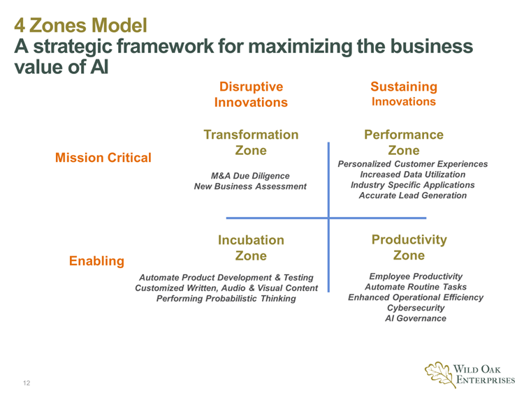 In my early GenAI work with clients, we’ve used the 4 Zones Model framework above to identify multiple business value creation needs and opportunities across different operating and functional units. In each case, we identified a specific business value creation priority and then rigorously explored how successfully adopting GenAI could enable or enhance its outcome. As part of that work, we directly tied employee needs, priorities, and benefits into the agreed upon implementation program. Here is an initial breakdown of these examples by zone: